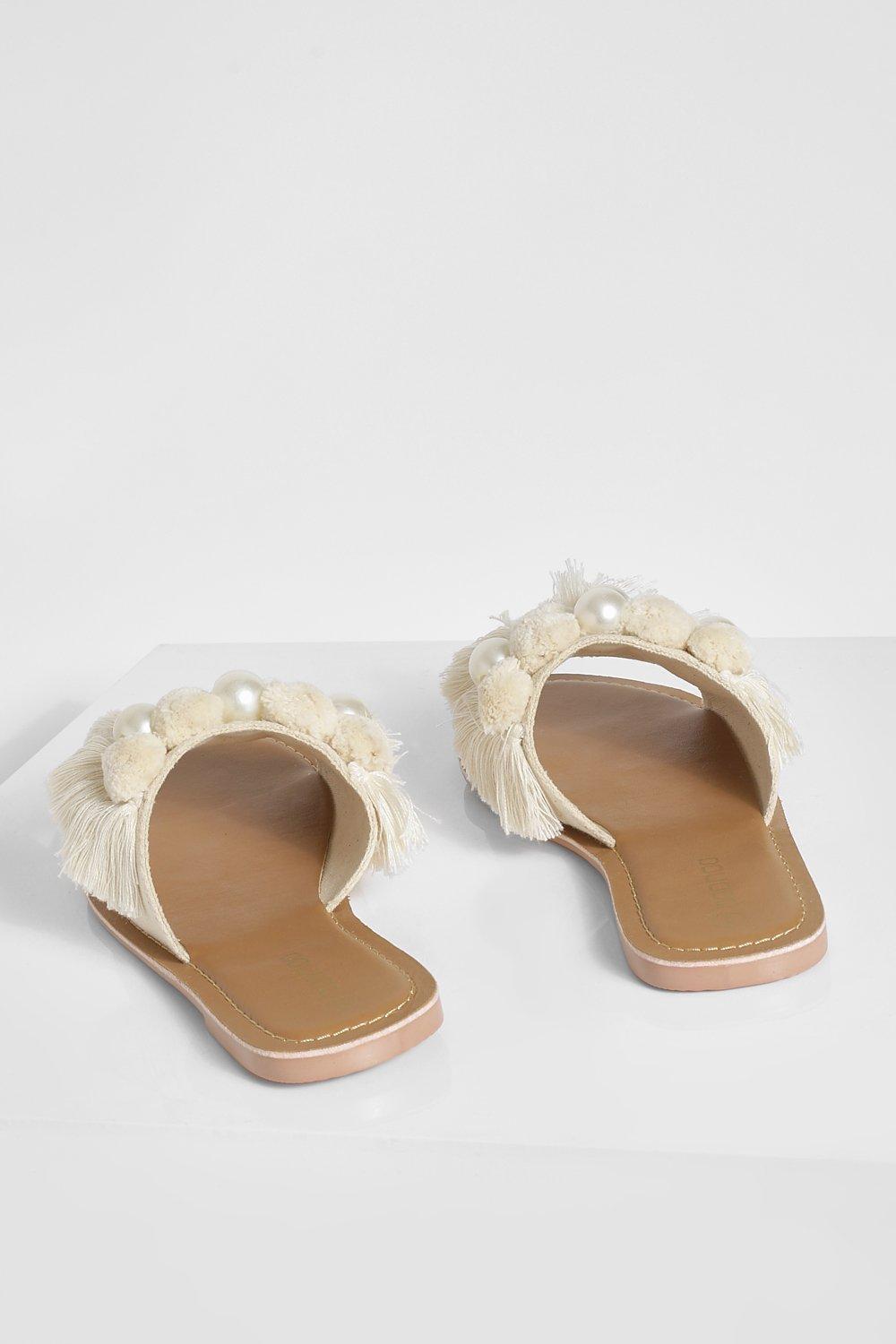 Pearl Pom Pom Detail Strap Slides boohoo Very well made.