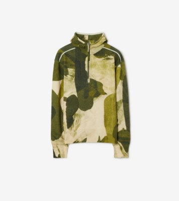 Camouflage Wool Half zip Hoodie in Wheat Men Burberry Official Very well made.