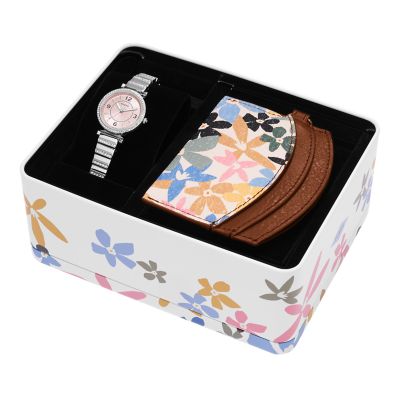 Carlie Three Hand Stainless Steel Watch and Card Case Box Set Very well made.