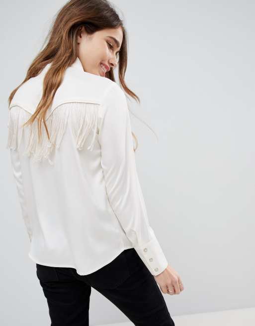 ASOS DESIGN Satin Western Shirt with Fringe Very well made.