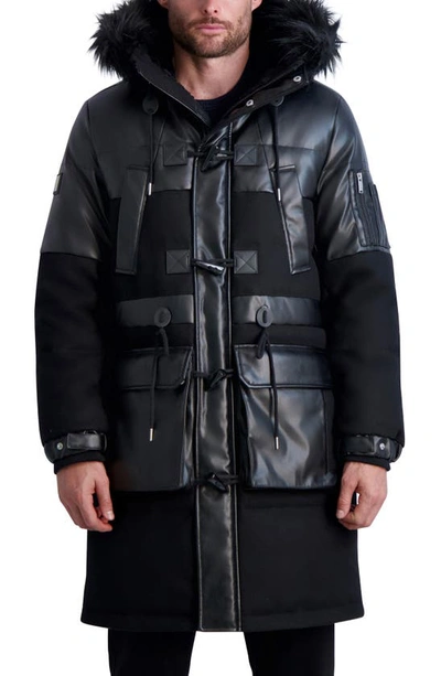 Karl Lagerfeld Fabric Blocked Faux Fur Trim Down Feather Wool Very well made.