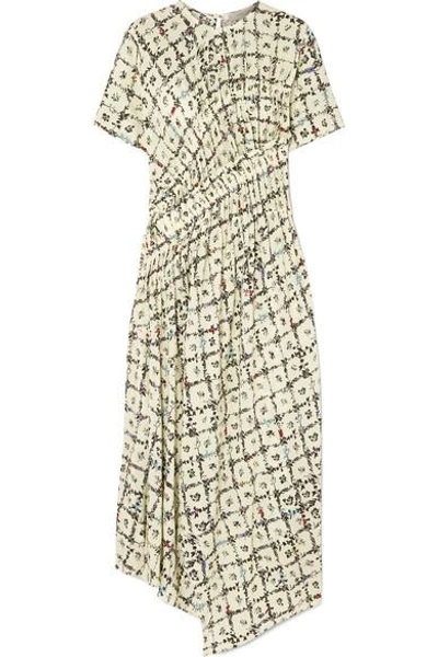 Keziah Asymmetric Floral print Crepe De Chine Midi Dress In Ivory Multi Very well made.