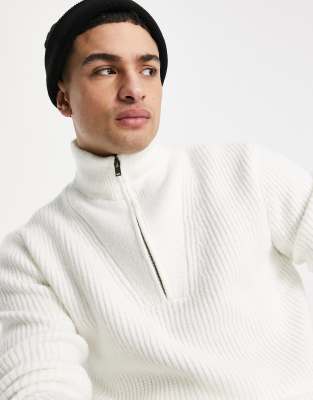 Pull Bear Half Zip Knit Sweater In White ModeSens Very well made.
