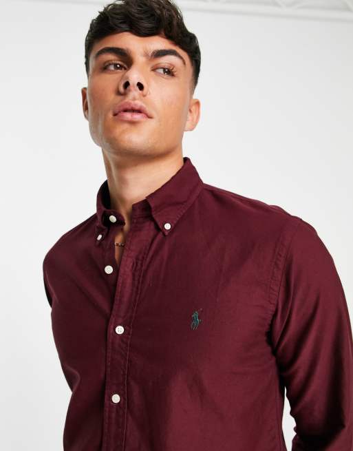 Polo Ralph Lauren icon logo garment dyed oxford shirt custom fit in burgundy Very well made.