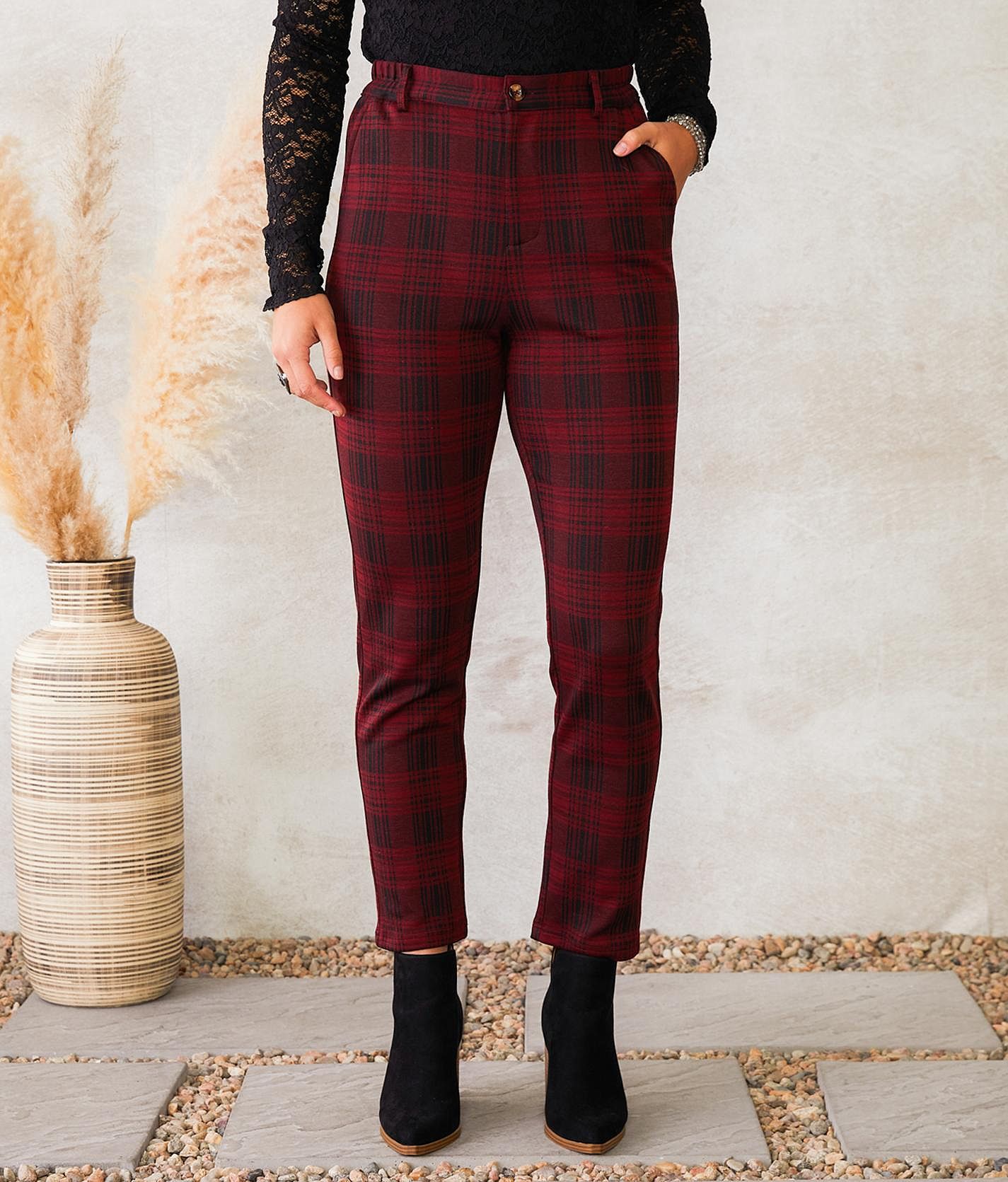 Red Plaid Pants High Waist Plaid Skinny Pants Womens Red Plaid Very well made.