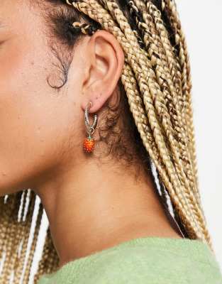 Topshop Beaded Strawberry Drop Hoop Earrings In Gold And Red Very well made.