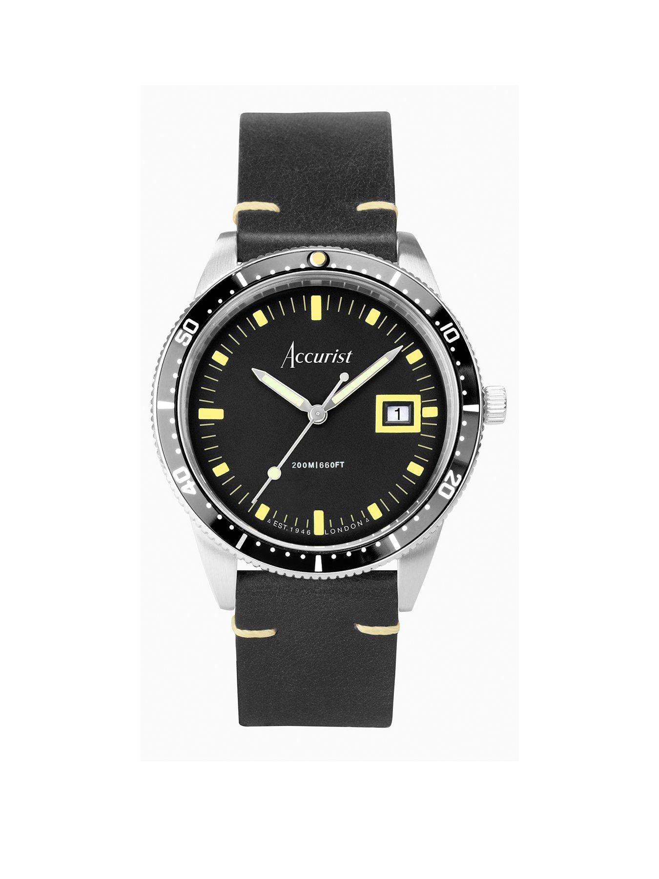 Accurist Dive Mens Black Leather Strap Analogue Watch very Very well made.