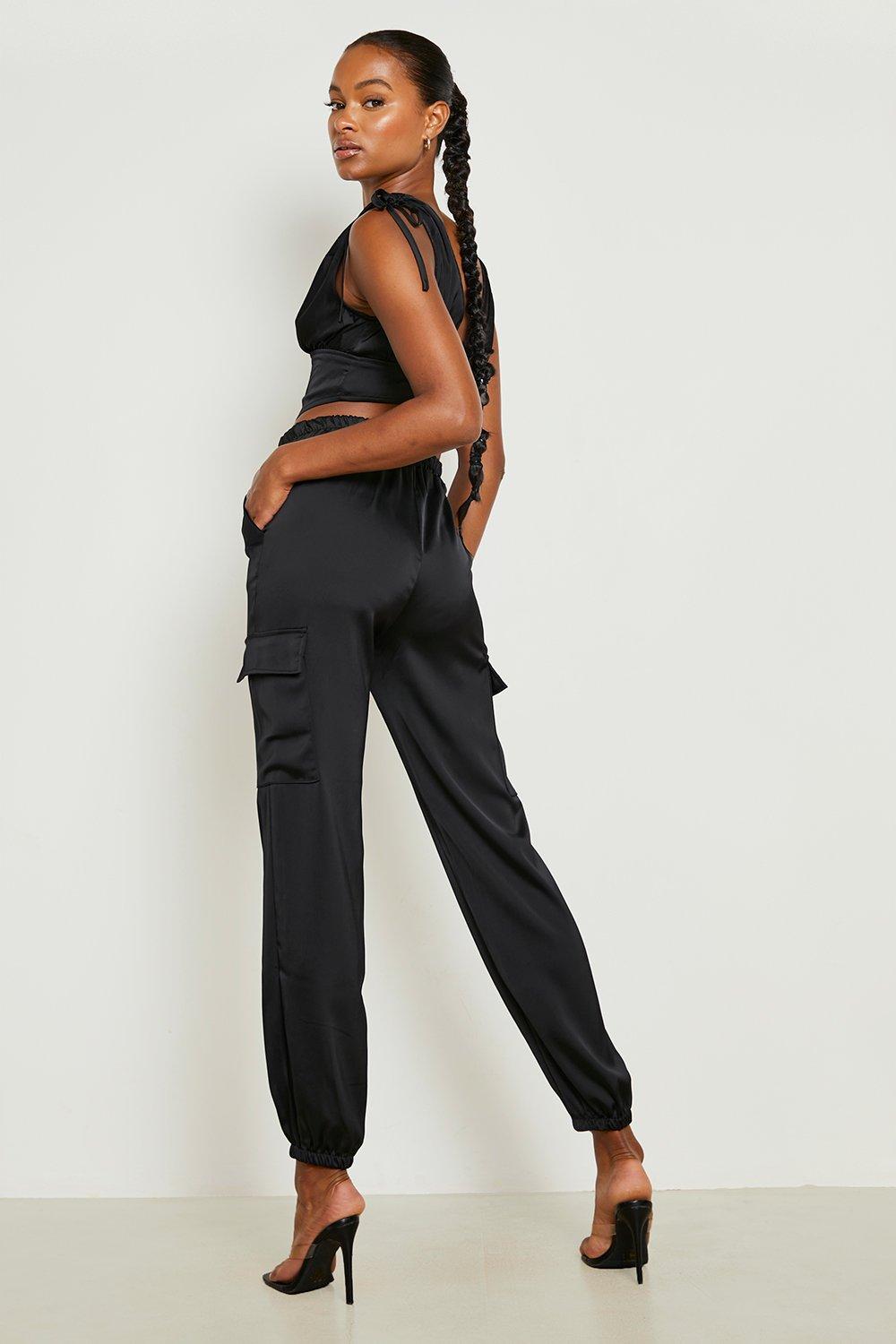Women s Tall Premium Satin Cargo Cuffed Trousers Boohoo UK Very well made.