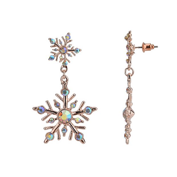 Holiday Snowflake Rose Gold AB Stone Earrings Very well made.