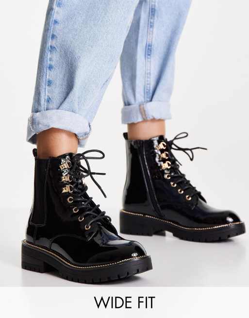 River Island Stivaletti stringati a pianta larga in vernice nera lucida con suola spessa Very well made.