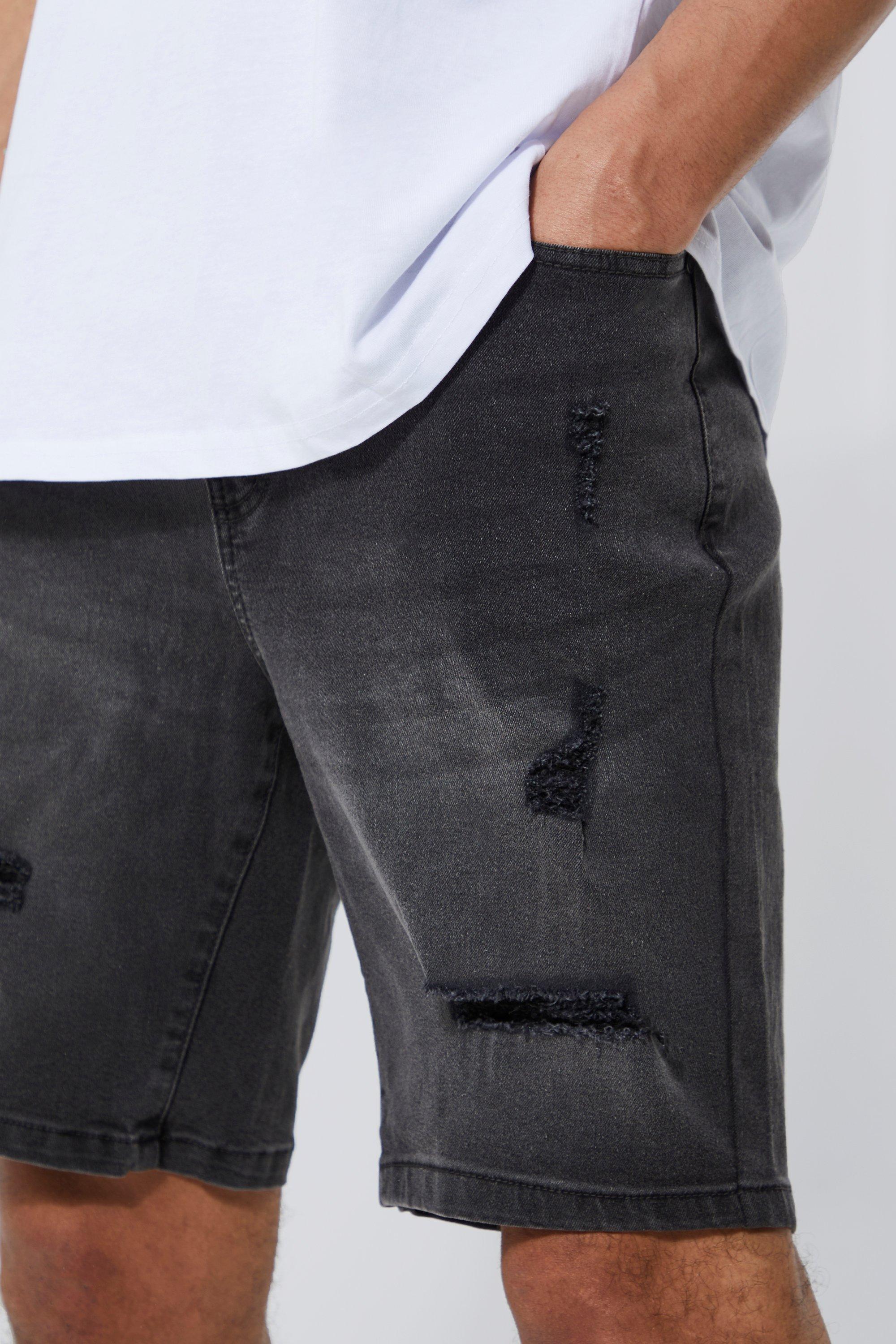 Plus Skinny Stretch Distressed Denim Short boohooMAN UK Very well made.