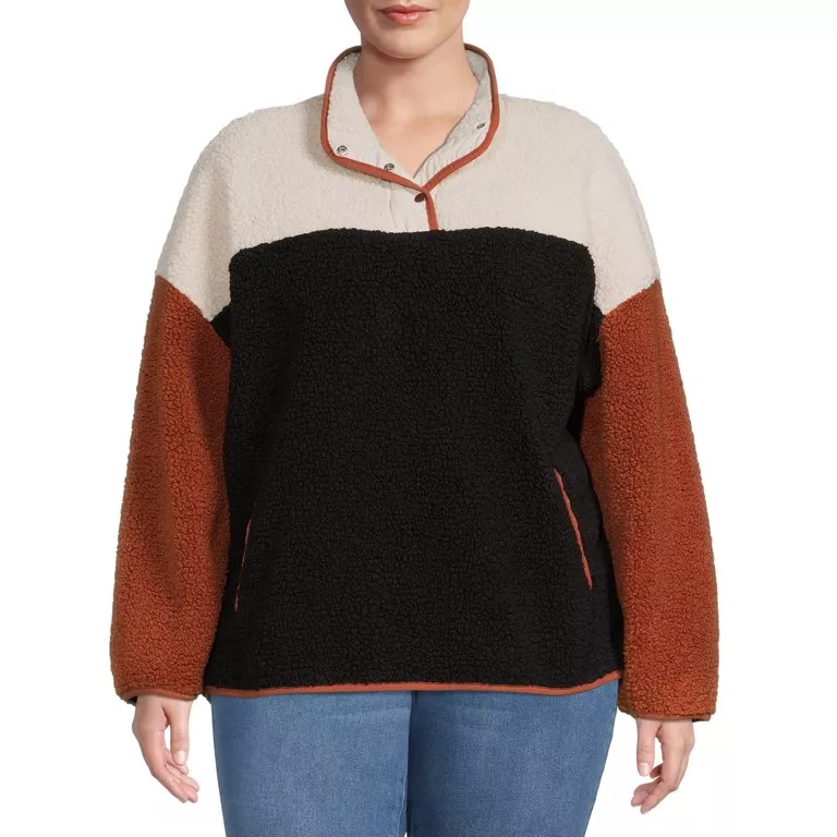Time and Tru Women s Fleece Henley Pullover Sweatshirt with Long Very well made.