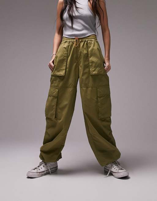 Topshop oversized balloon cargo trouser with contrast trims in khaki Very well made.
