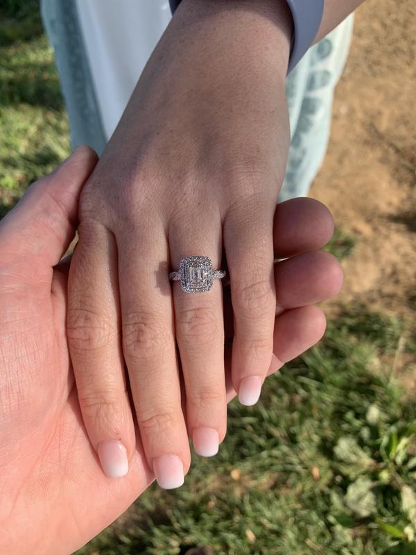 Vera Wang Love 1 ct Emerald Diamond Double Halo Crossover Very well made.