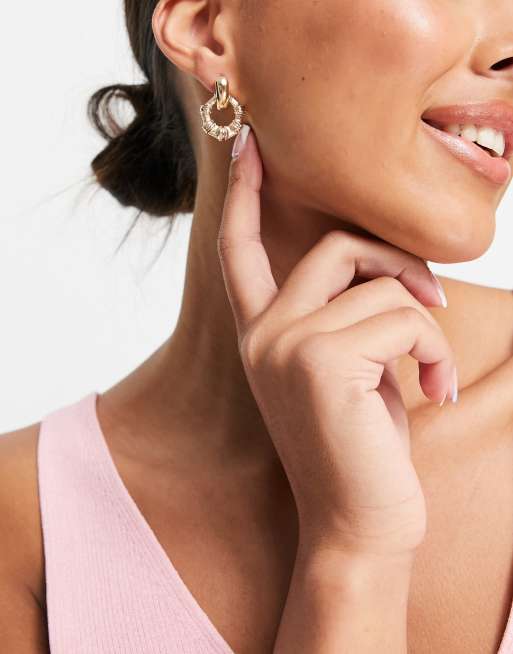 ASOS DESIGN hoop earring with large twist link design in gold tone Very well made.