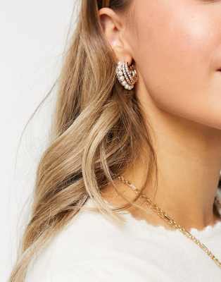 ASOS DESIGN hoop earrings with pearl row in gold tone ASOS Very well made.
