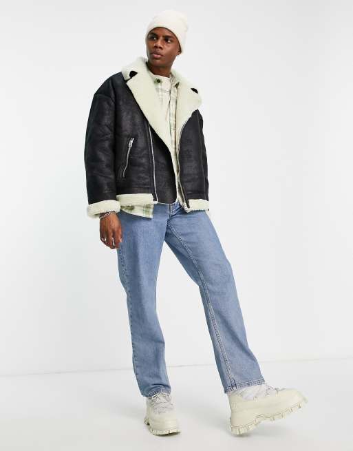 ASOS DESIGN oversized biker jacket with sherpa lining in black ASOS Very well made.