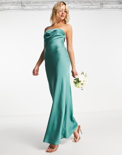 ASOS DESIGN Vestito lungo da damigella con bottoni sul retro in raso verde azzurro Very well made.