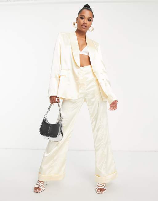 Liquorish Petite satin structured blazer in white part of a set Very well made.