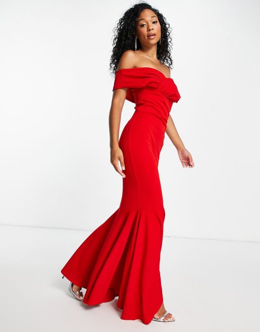 Little Mistress bardot fishtail maxi dress in red Very well made.