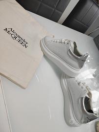 Sneakers Scarpe ML Tipo Mcqueen Donna Pelle Bianco Nero Glitter Very well made.