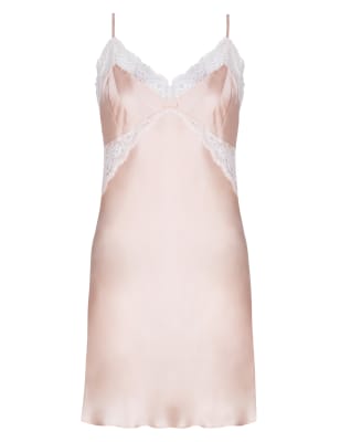 Pure Silk Chemise Nightdress with French Designed Lace Autograph Very well made.