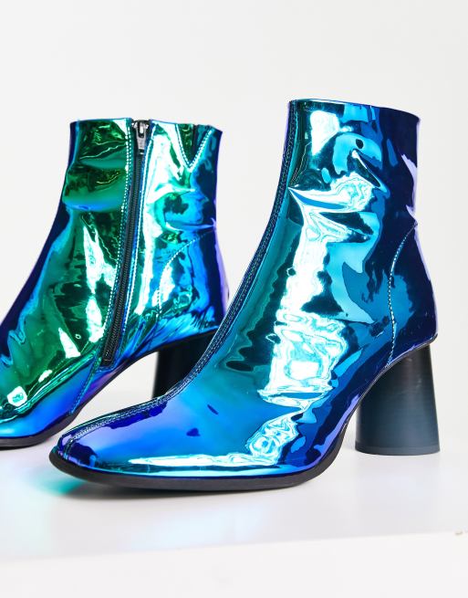ASOS DESIGN heeled chelsea boot in blue mirror faux leather ASOS Very well made.