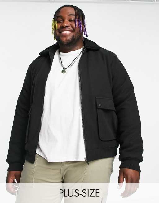 Brave Soul Plus wool jacket with borg collar in black Very well made.