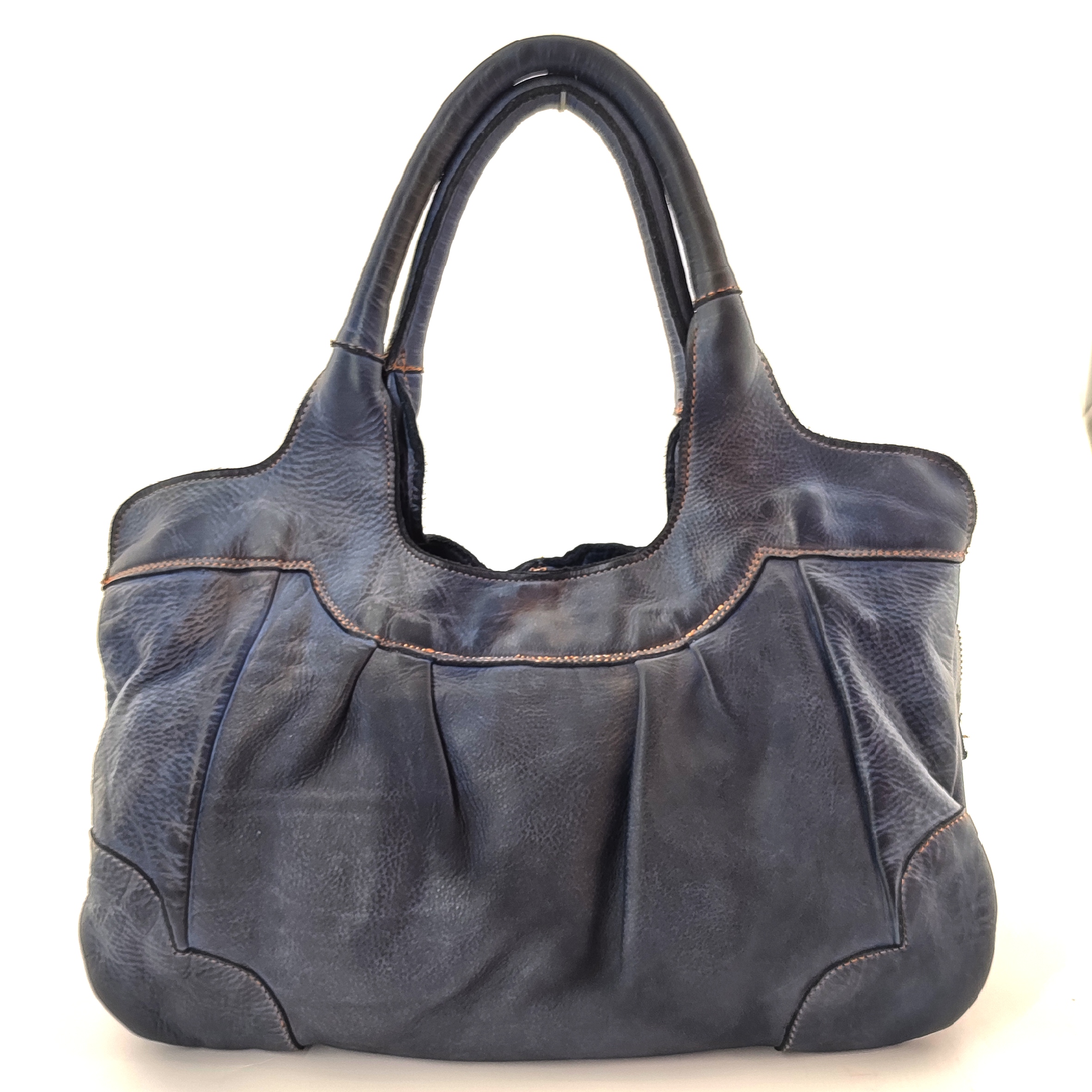 Borsa a mano Bayside in Pelle Vintage Colo Blu Nero Mod. BS 643 Very well made.