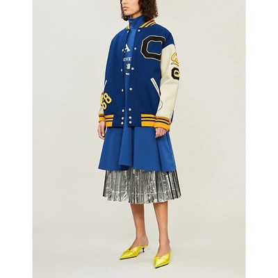 CALVIN KLEIN 205W39NYC C patch Wool And Leather Varsity Jacket in Very well made.
