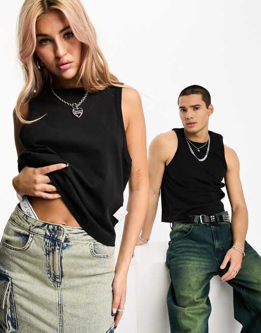 Calvin Klein Jeans Unisex cropped seaming singlet in black exclusive to ASOS Very well made.